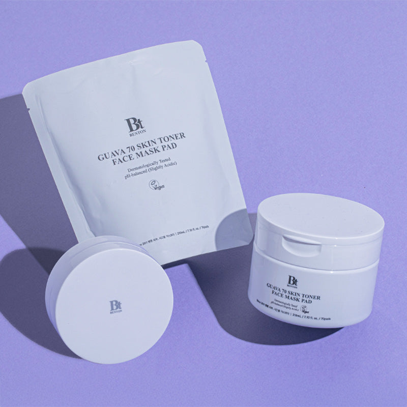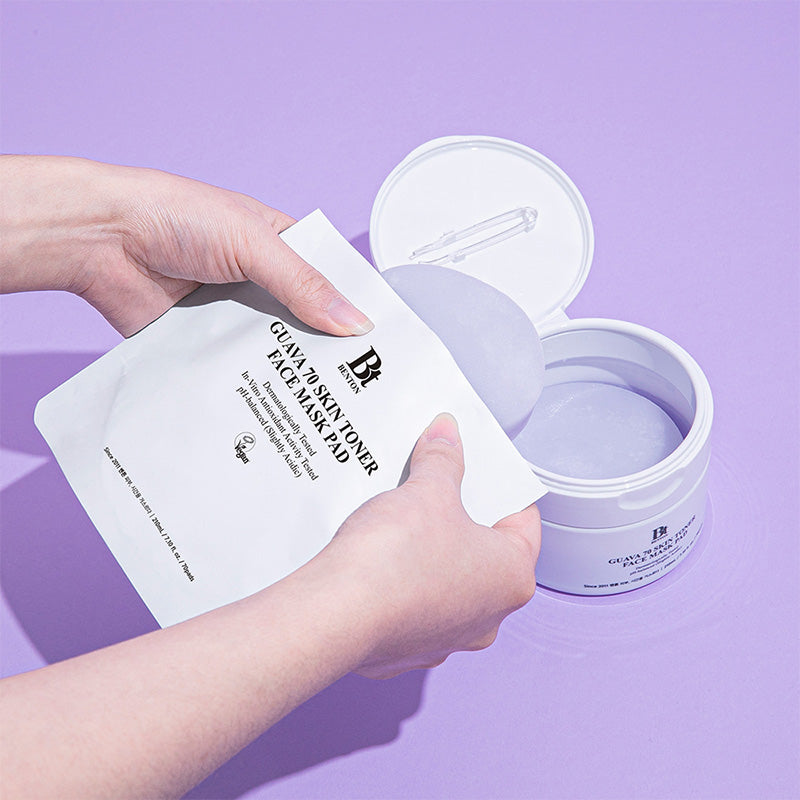 Erlebe eine intensive Feuchtigkeitsversorgung und beruhigende Pflege mit dem Benton Guava 70 Skin Toner Face Mask Pad, angereichert mit 70 % Jeju-gewachsenem Guavenblattextrakt – ein Kraftpaket aus Antioxidantien, einschließlich der Vitamine C und E, um die Haut zu nähren und zu revitalisieren. Diese vegan-zertifizierten Pads sind mit sieben beruhigenden Pflanzenextrakten, Azulen und Hyaluronsäure mit niedrigem Molekulargewicht angereichert und helfen, Irritationen zu lindern, das Hautbild zu verfeinern und Feuchtigkeit und Elastizität wiederherzustellen.