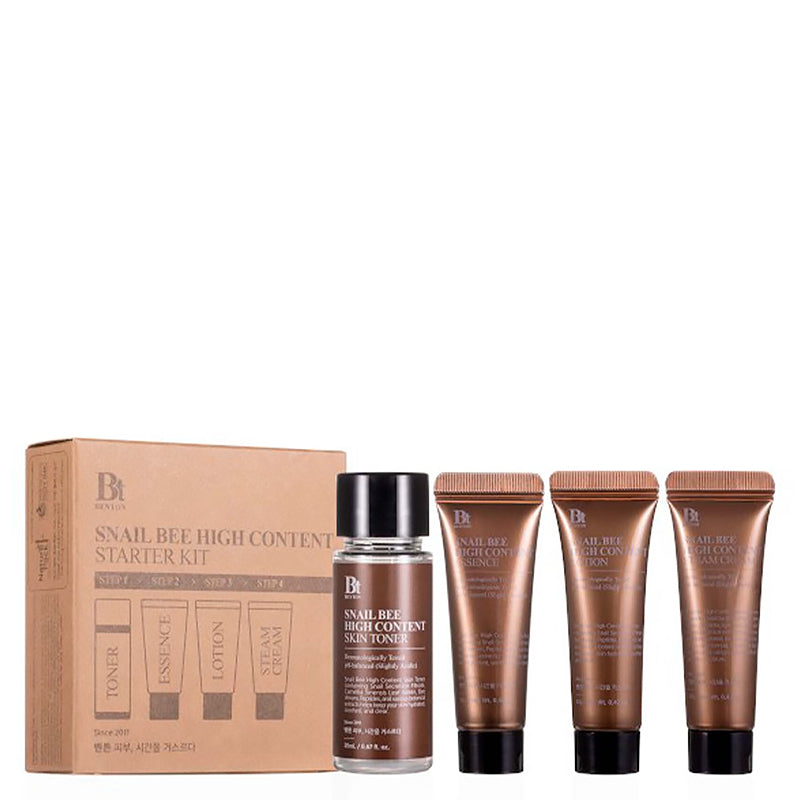 The Benton Snail Bee High Content Starter Kit contains a complete four-step skincare set: toner, essence, lotion, and steam cream, all formulated with snail mucin and bee venom for hydrated, smooth, and revitalized skin.