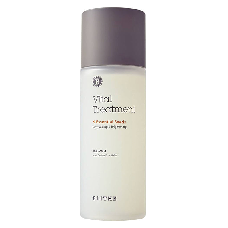 Das Blithe Vital Treatment 9 Essential Seeds 2-in-1 Toner und Essenz besteht zu 78% aus Samenextrakten und ist vollgepackt mit Vitaminen, Mineralien und Nährstoffen, die die Haut verjüngen und aufhellen und ihr einen gesunden, gleichmäßigen und jugendlichen Teint verleihen. Jeder der neun Samenextrakte wurde aufgrund seiner Fähigkeit ausgewählt, das Erscheinungsbild von fahler und müder Haut aufzuhellen: Baobab-Baum, Grüner Tee, Nachtkerze, Fenchel, Chia, Lotus, Quinoa, Traube und Hagebuttenkerne. Außerdem wird Niacinamid hinzugefügt, um Verfärbungen und Pigmentierungen zu reduzieren.