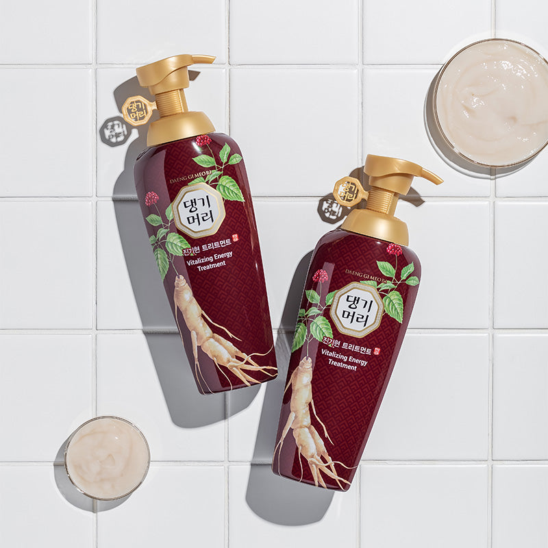 Daeng Gi Meo Ri Vitalizing Energy Treatment ist eine reichhaltige Haarspülung, die schwaches oder strapaziertes Haar pflegt, glättet und stärkt. Sie enthält traditionelle koreanische Heilkräuter wie Ginseng, Rehmannia, Chrysantheme und Angelikawurzel, kombiniert mit hydrolysiertem Keratin, Seide und Kollagen, um die Haarstruktur zu reparieren und zu stärken. Kamelienöl, Distelöl, Jojobaöl und Nachtkerzenöl sorgen für tiefe Feuchtigkeit und Glanz, während Menthol und Kräuterextrakte die Kopfhaut erfrischen und die Kämmbarkeit verbessern.