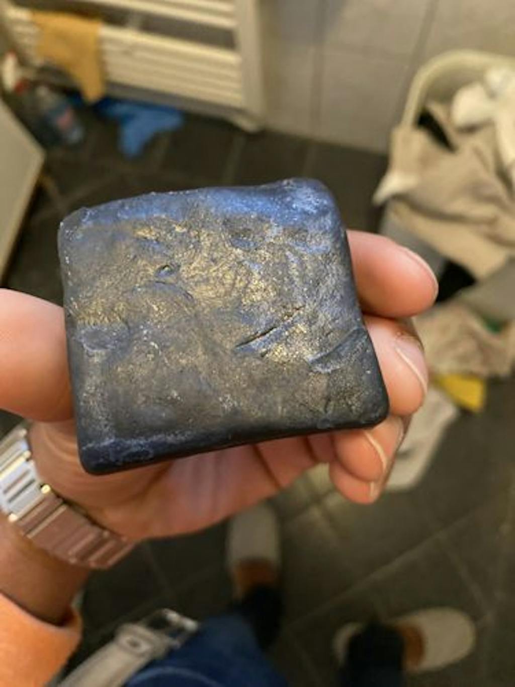 Sodium Hydroxide, Cocos Nucifera (Coconut) Oil, Elaeis Guineensis (Palm) Oil, Aqua (Water), Helianthus Annuus (Sunflower) Seed Oil, Olea Europaea (Olive) Fruit Oil, Simmondsia Chinensis (Jojoba) Seed Oil, Ricinus Communis (Castor) Seed Oil, Tocopherol, Theobroma Cacao (Cocoa) Seed Butter, Glycine Max (Soybean) Oil, Vitis Vinifera (Grape) Seed Oil, Moroccan Lava Clay, Lavandula Angustifolia (Lavender) Oil, Charcoal Powder, Eucalyptus Globulus Leaf Oil, Black Strap Powder, Volcanic Ash