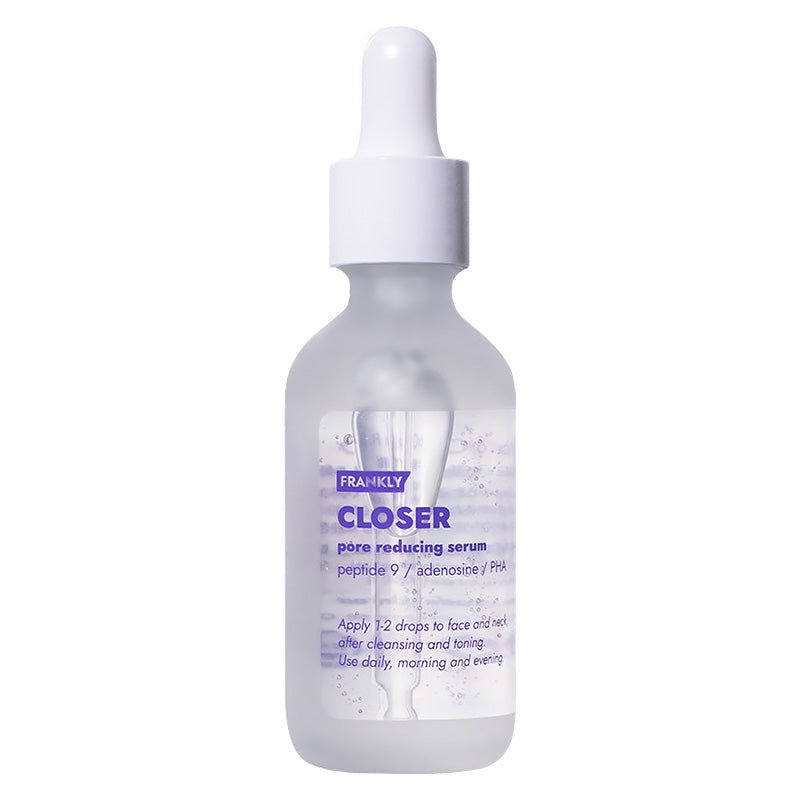 The FRANKLY Closer Pore Reducing Serum is a lightweight, vegan-friendly elixir designed to tighten and refine pores while delivering a dewy, radiant finish. Infused with nine powerful peptides and vegan collagen, it works to improve skin elasticity, reduce the appearance of enlarged pores, and restore firmness.