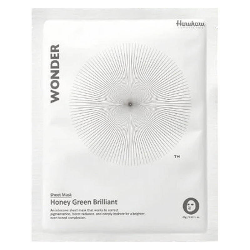Die Haruharu's Honey Green Brilliant Mask ist eine stark aufhellende und entzündungshemmende Blattmaske mit fermentiertem grünem Tee und Honig. Die Maske besteht aus umweltfreundlichen Mikrofasern, die Moso-Bambuskohlepulver enthalten, das der Maske eine hervorragende Hauthaftung verleiht und Unreinheiten absorbiert.