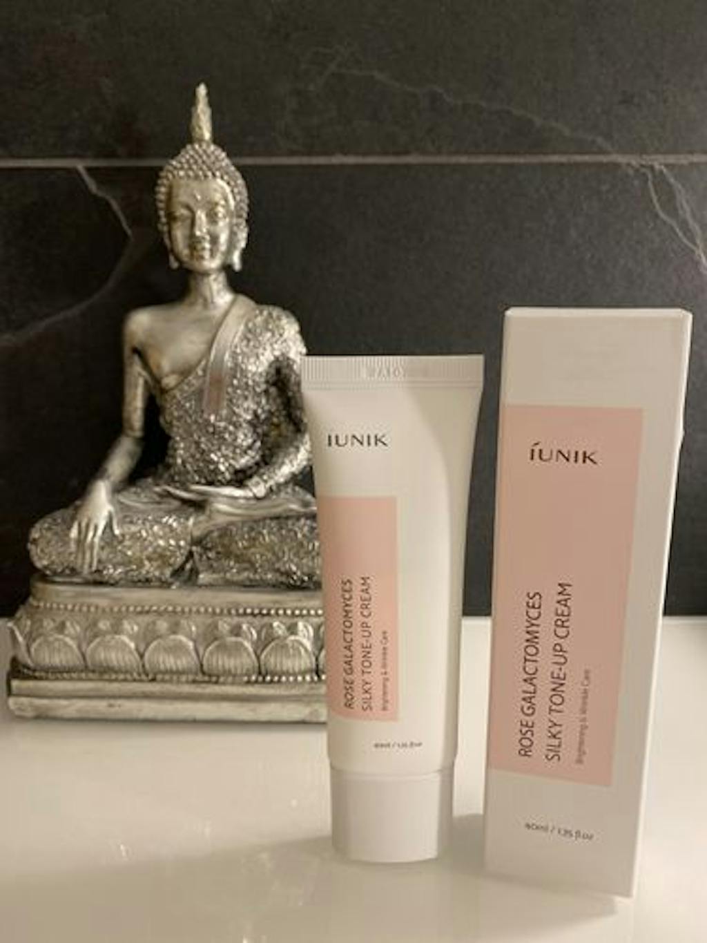 Die iUNIK Rose Galactomyces Silky Tone Up Cream ist mit Galactomyces, Rosenwasser und natürlichen Pflanzenextrakten angereichert. Diese leichte, tonisierende Creme reguliert die Feuchtigkeit und nährt die Haut, so dass sie sich seidig glatt anfühlt und klar und sauber aussieht. Angereichert mit einem gemischten Getreideextrakt, der die Haut vor ultravioletten Strahlen schützt, einem Resmelin-Komplex, der die Haut beruhigt und aufhellt, und Niacinamid, das Falten und feine Linien reduziert.