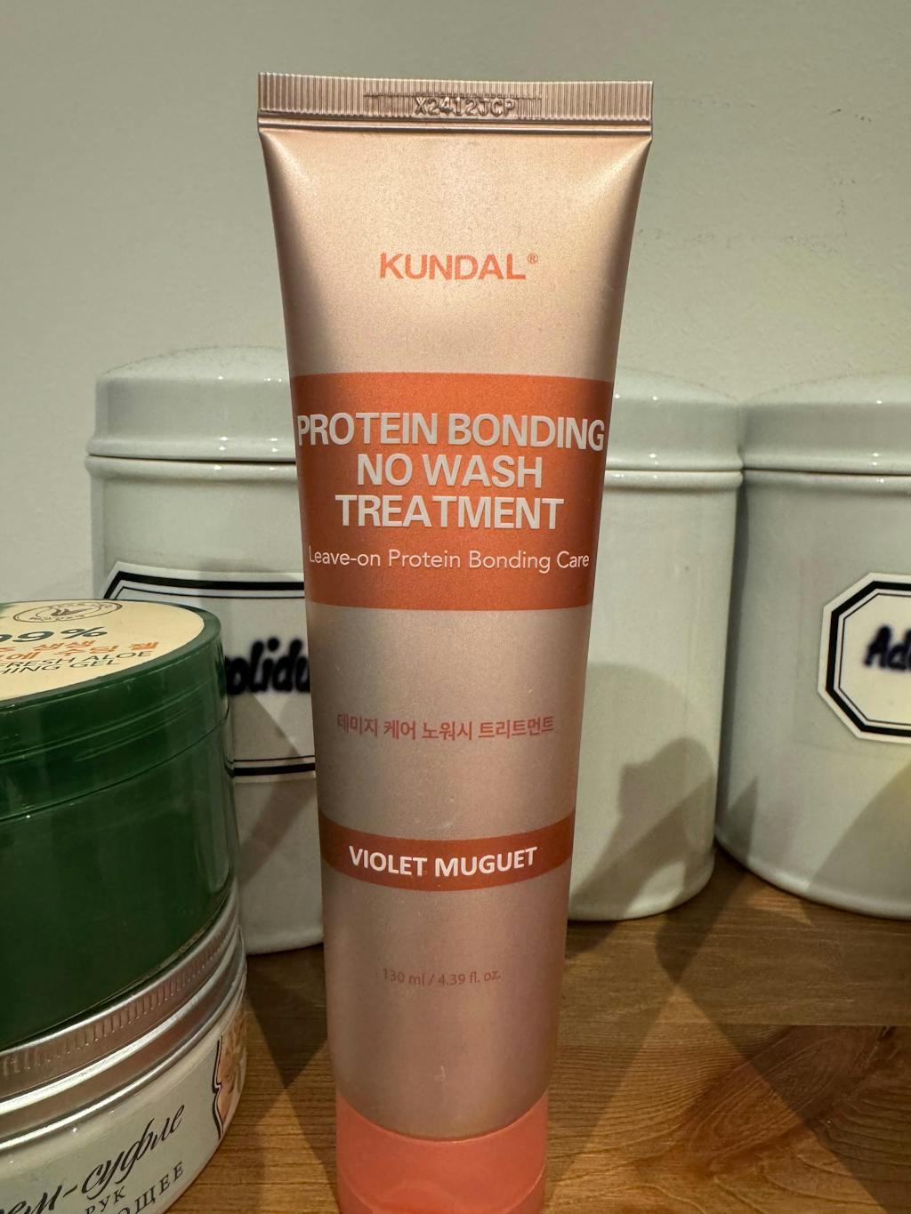 Das Kundal Protein-Bonding No-Wash Treatment ist insgesamt gut: Es zieht ein, hinterlässt aber trotzdem ein leicht spürbares, reichhaltiges Gefühl auf dem Haar – wie ein dünner Pflegefilm. Nicht störend, und die Haare wirken dabei weder fettig noch beschwert. Man merkt einfach, dass etwas Pflegendes drinsteckt und die Haarstruktur stärkt. Solide, nährende Leave-in-Pflege für trockenere Längen.