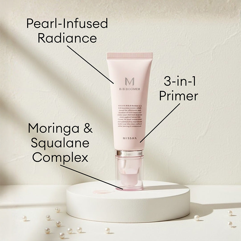 The MISSHA M BB Boomer is a radiance-boosting makeup primer designed to enhance the performance and finish of your BB cream. Infused with pearl powder, moisturizing ingredients, and anti-aging botanicals, it preps the skin with a luminous glow while improving the adherence and longevity of your foundation or BB cream.