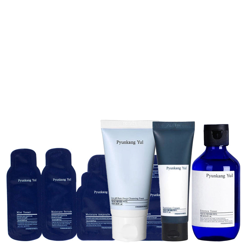 I am very happy with this kit. First time using Pyunkang Yul brand products. The essense toner is very light and leaves the skin feeling very pleasant, I generally don't use soaps because they leave the skin very tight and dry, but this soap is excellent, the skin remains hydrated and very soft. The nourishing cream has also enchanted me, its texture is very delicate and leaves my skin very soft. I 100% recommend trying this kit and the brand's products.