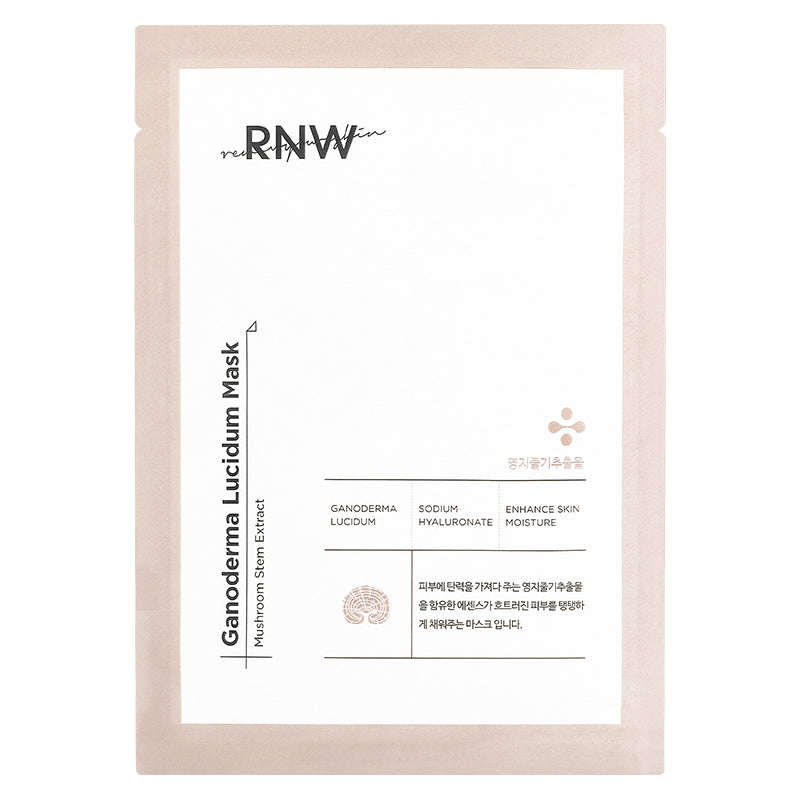 RNW Ganoderma Lucidum Mask is a sheet mask designed to deeply moisturize, soothe, and restore skin resilience. It features Ganoderma Lucidum (Reishi mushroom) stem extract with panthenol, trehalose, and allantoin to help calm irritation, hydrate, and support skin elasticity. The formula also includes hyaluronic acid and arginine for moisture retention and skin barrier support, plus polymers to help the essence cling to skin for better absorption.