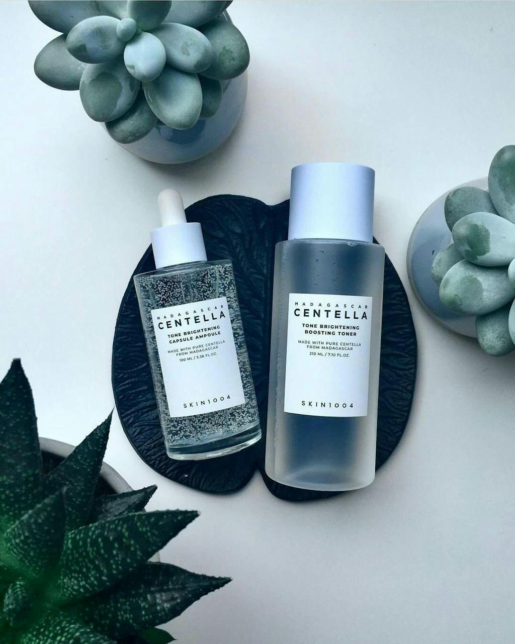 Die SKIN1004 Madagascar Centella Tone Brightening Capsule Ampoule ist eine leichte Ampulle, die wie eine Essenz wirkt und mit den patentierten MadeWhite™-Mikrokügelchen angereichert ist, die schnell in die Haut einziehen und ein weiches, nicht klebriges Finish sowie einen natürlichen, strahlenden Glanz hinterlassen.